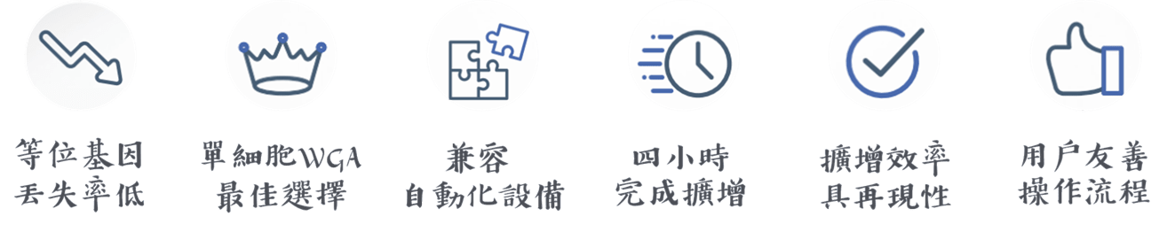 Ampli1 WGA PLUS Kit 為經優化的全基因組擴增試劑,四小時內即可完成擴增。成功的單細胞基因組分析仰賴於合適的全基因組擴增 (WGA) 步驟,為每個基因座和相關等位基因提供強大且具再現性的擴增效率。