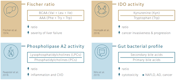 Biocrates專業的擴充軟體 – MetaboINDICATOR™可根據分析數據自動計算相關代謝物的總和與比率,用戶也可自定義新的公式,進一步探索新的數據意義。