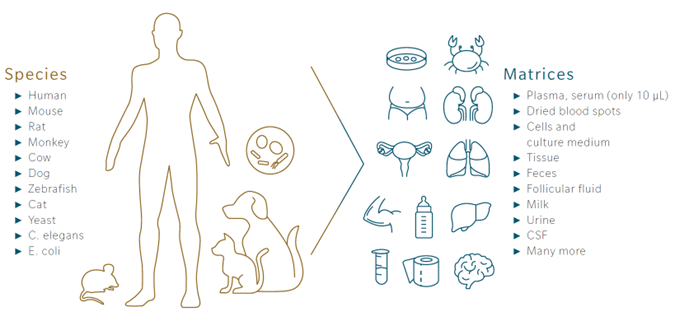 代謝組學可用來研究不同層面的生物學主題,僅需數微升的樣品即可分析個體表型。取得高品質與可靠的分析數據,代謝組學是個關鍵領域,對於現今的生物學研究和個人化健康是不可或缺的因素。