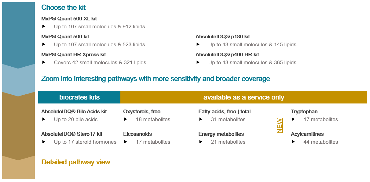 Biocrates提供的代謝組學試劑盒,幫助用戶通往代謝組學研究的康莊大道。